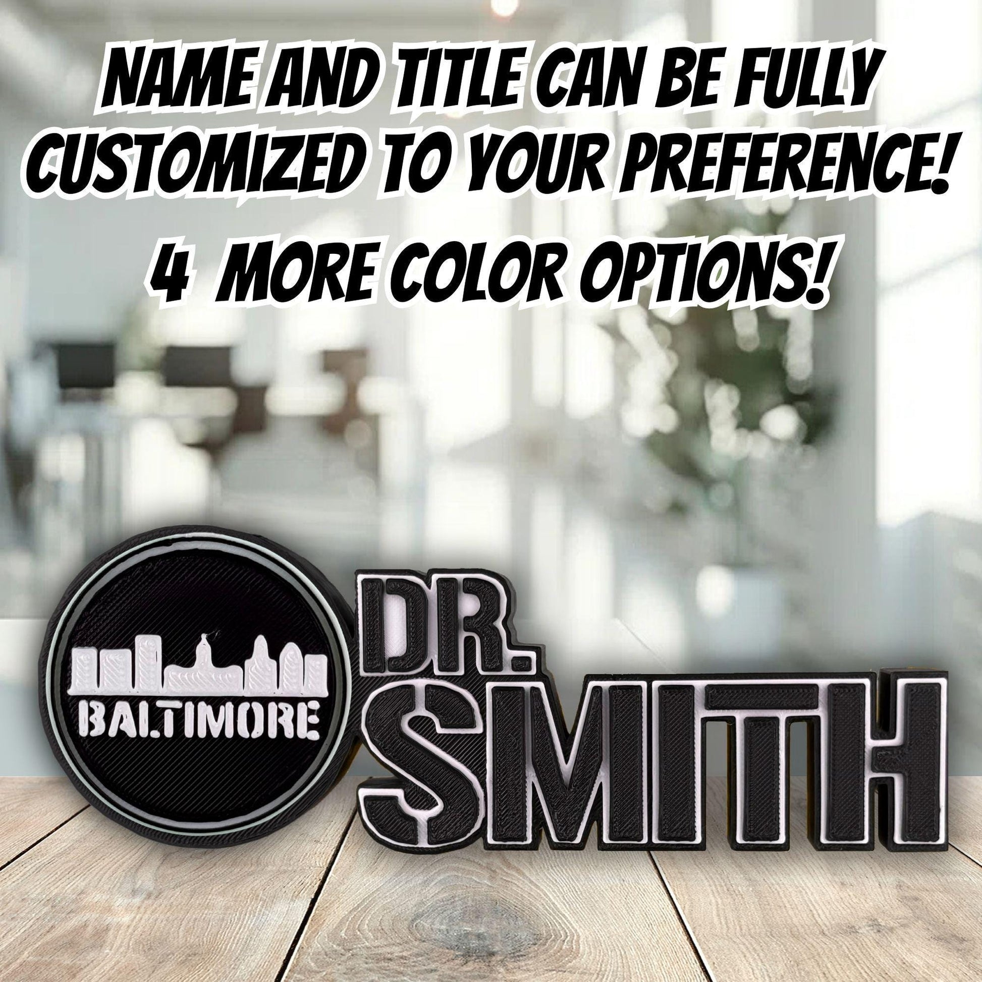 Additionally, if you’d like, I can replace the City Views logo on the left side of the Baltimore desk name plate with any logo of your choice — perfect for a teacher desk sign, boss name plate, or anyone who loves Baltimore office Décor."