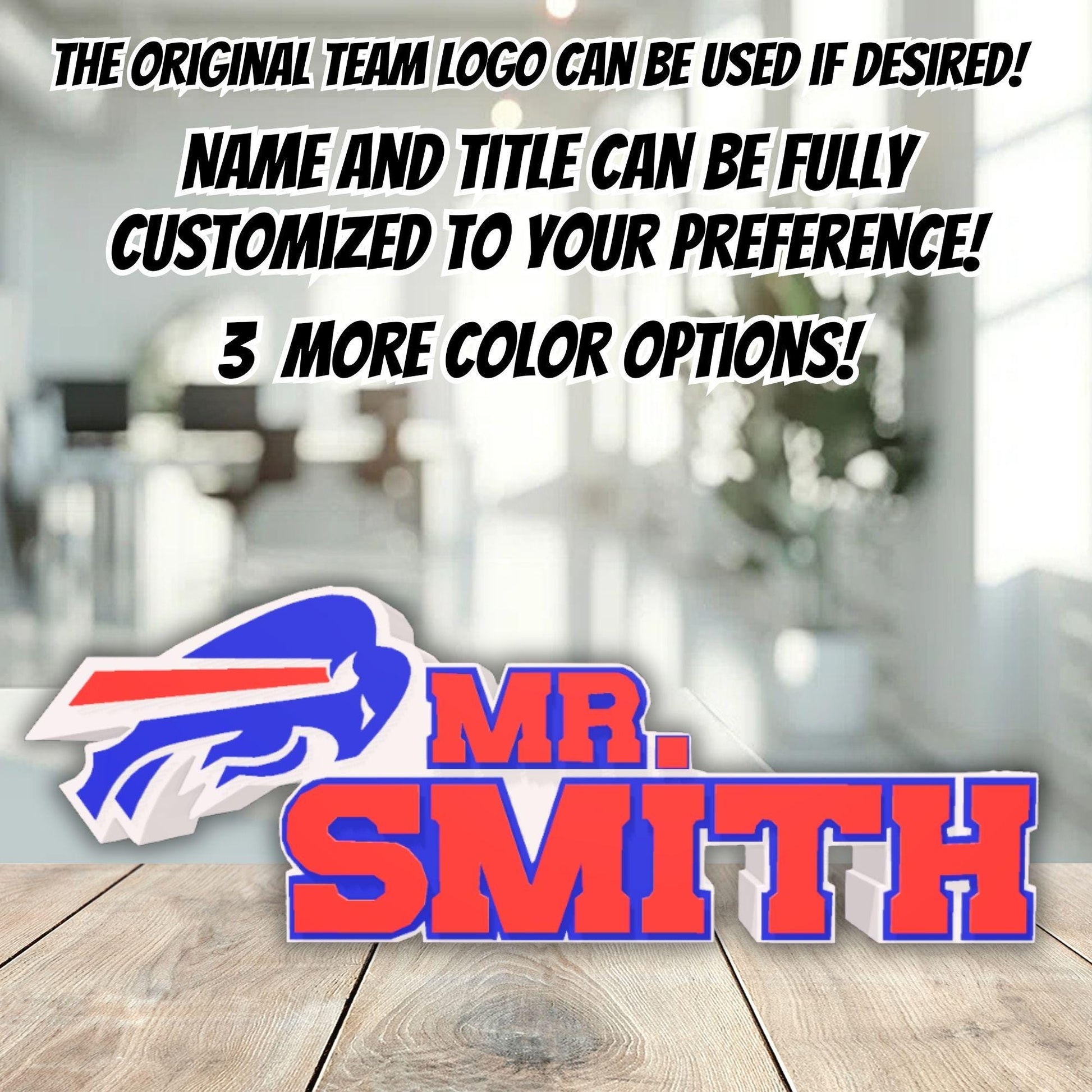 Looking for the perfect way to display your name with pride? This Custom Buffalo Football Desk Name Plate is exactly what you need! Our personalized desk name plate is perfect for Football fans and professionals alike. Whether youโre an avid Buffalo Football supporter or just want a sleek and professional desk name plate for your office, this is the ultimate custom nameplate to make your workspace stand out.