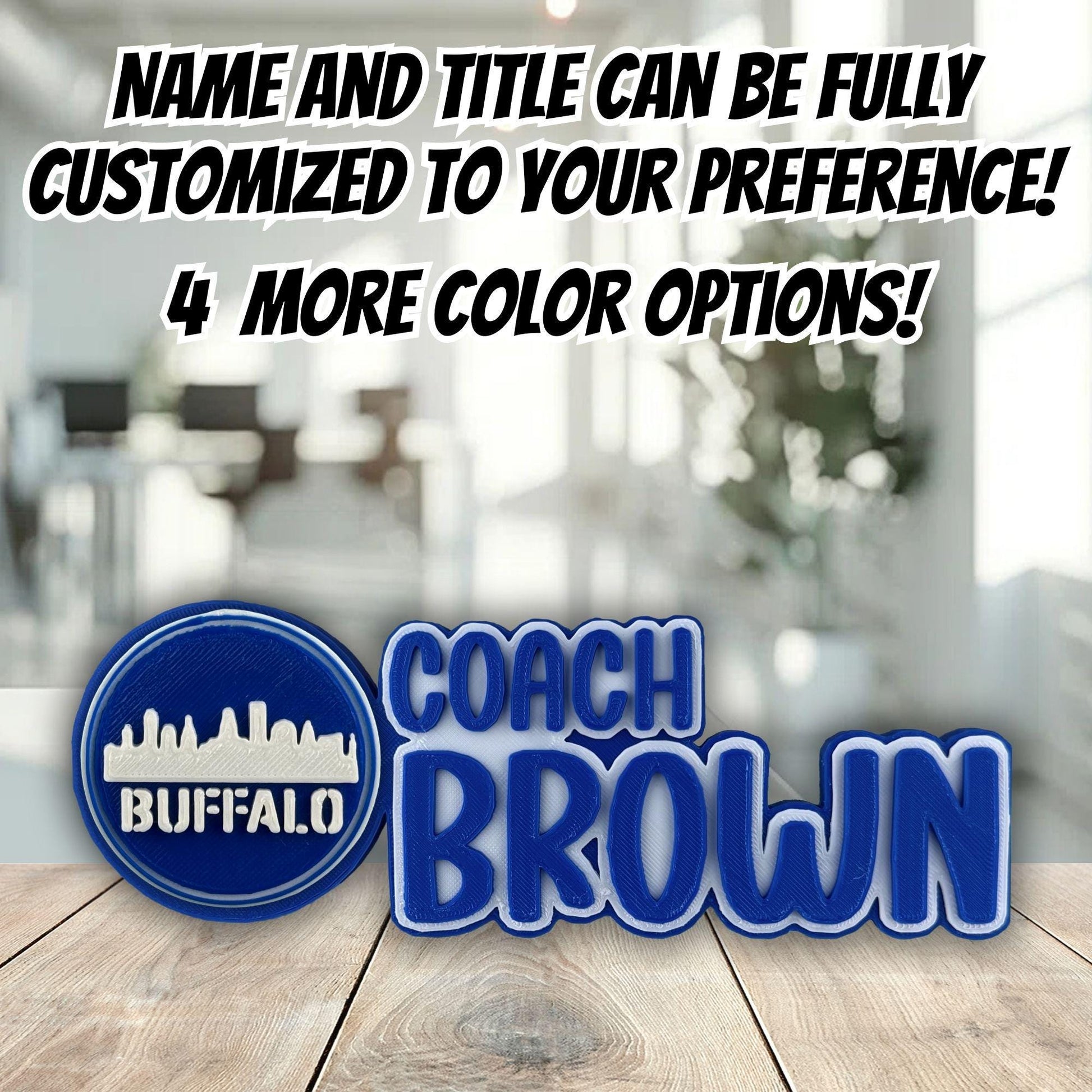 Personalized Buffalo Skyline Desk Name Plate, Teacher Name Gift, Ceo Plaque