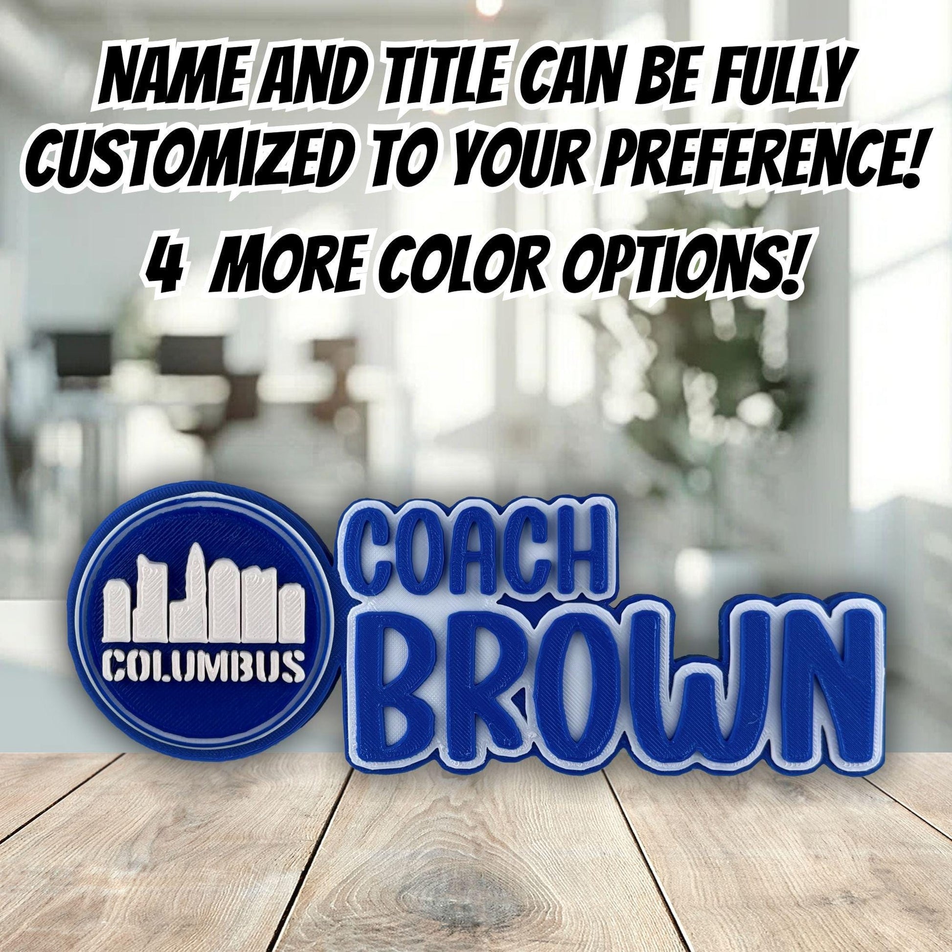 Additionally, if you’d like, I can replace the City Views logo on the left side of the Columbus Desk Name Plate with any logo of your choice — perfect for a Name Plate Teacher Gift, Office Décor for Boss, or anyone who loves Columbus office Décor."