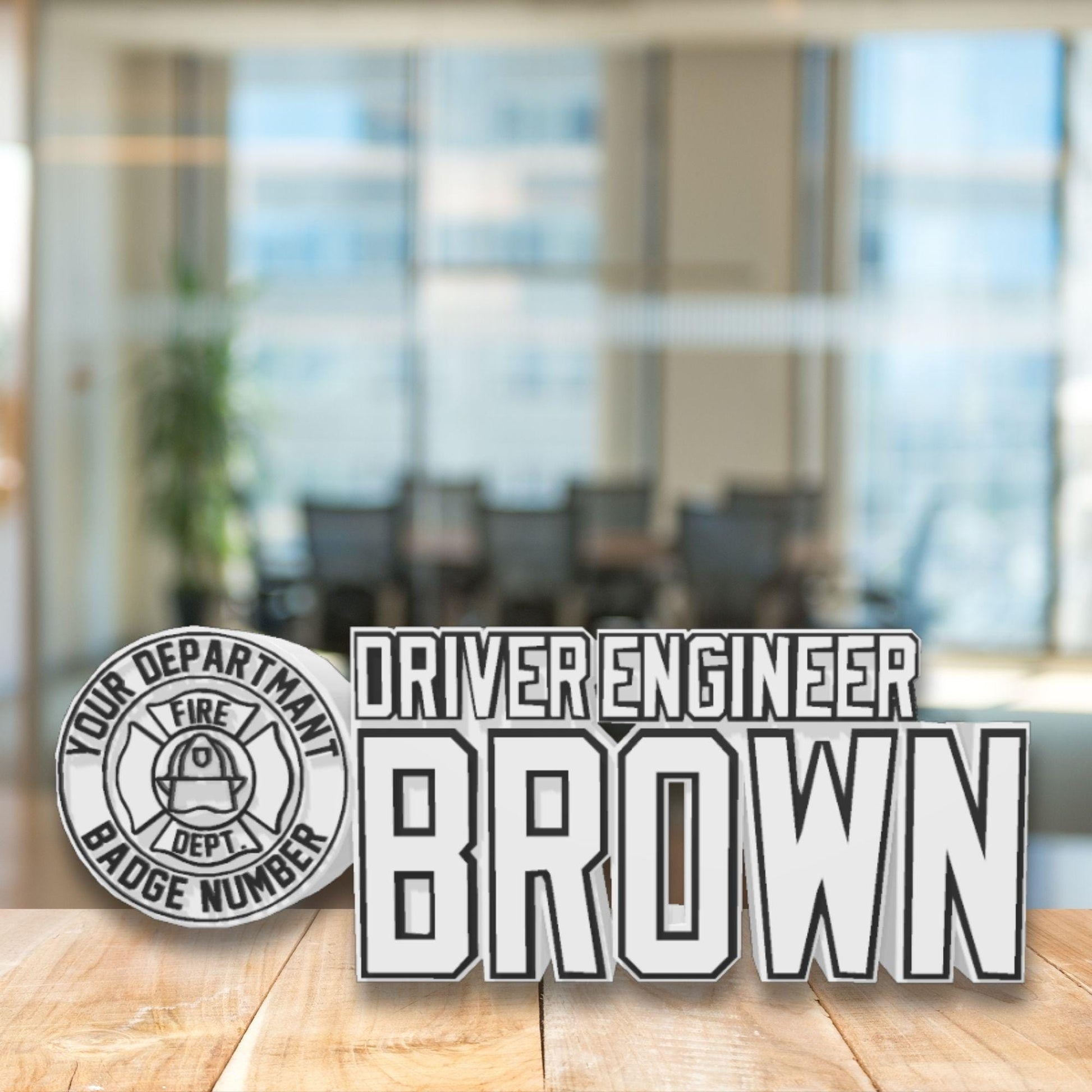 π Personalized Driver Engineer Firefighter Desk Name Plate β A Bold & Meaningful Gift for Firefighters