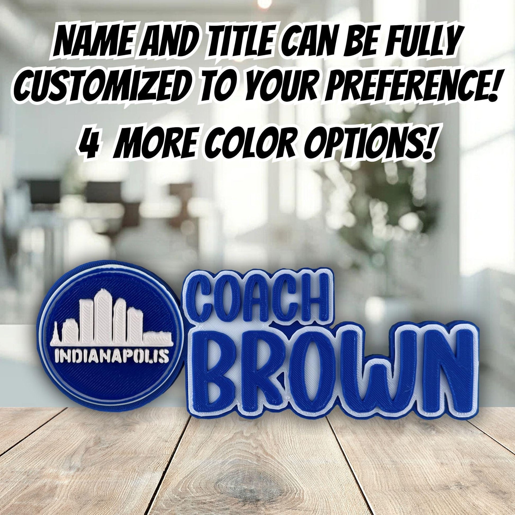 Personalized Indianapolis Skyline Desk Name Plate, Office Desk Sign, Classroom Decor