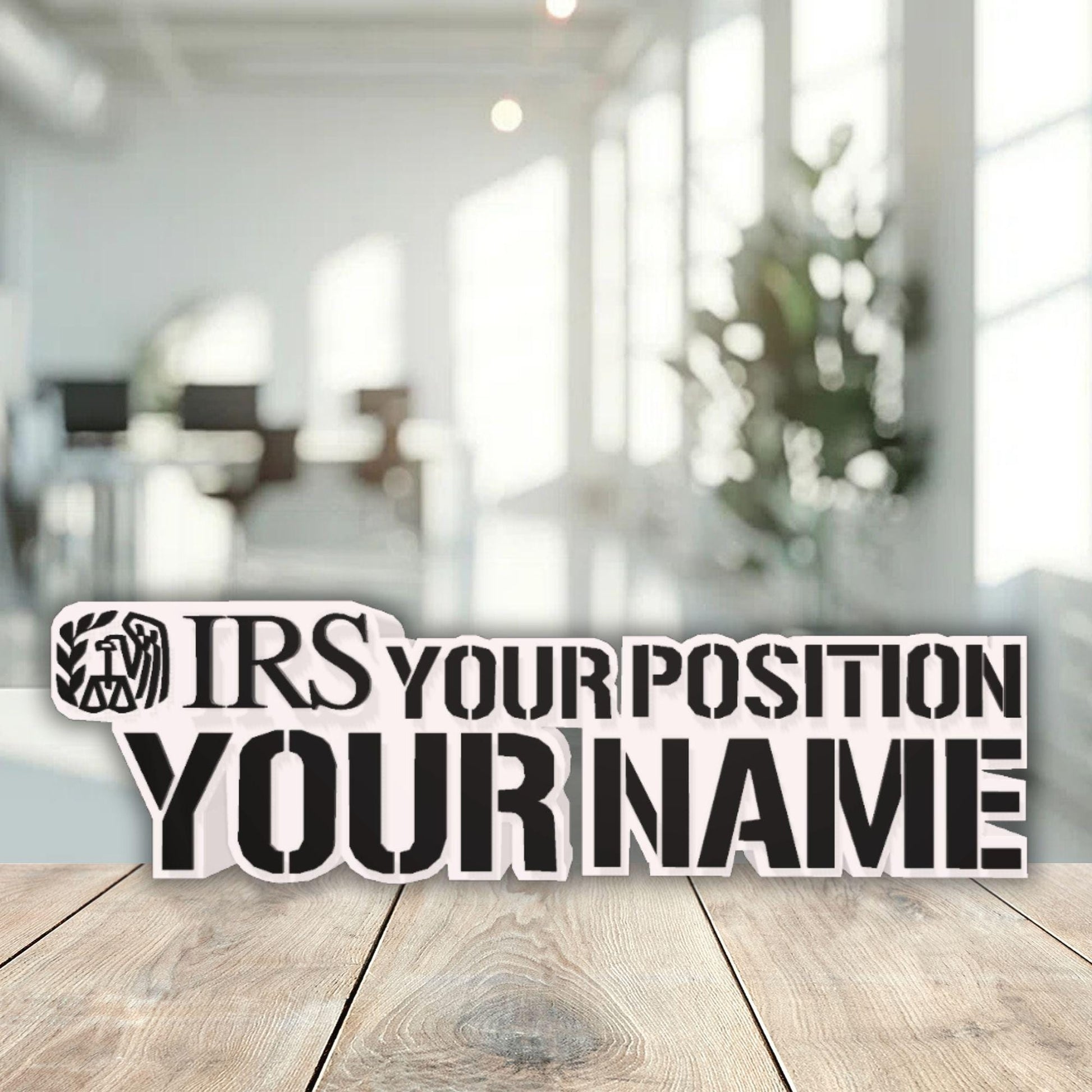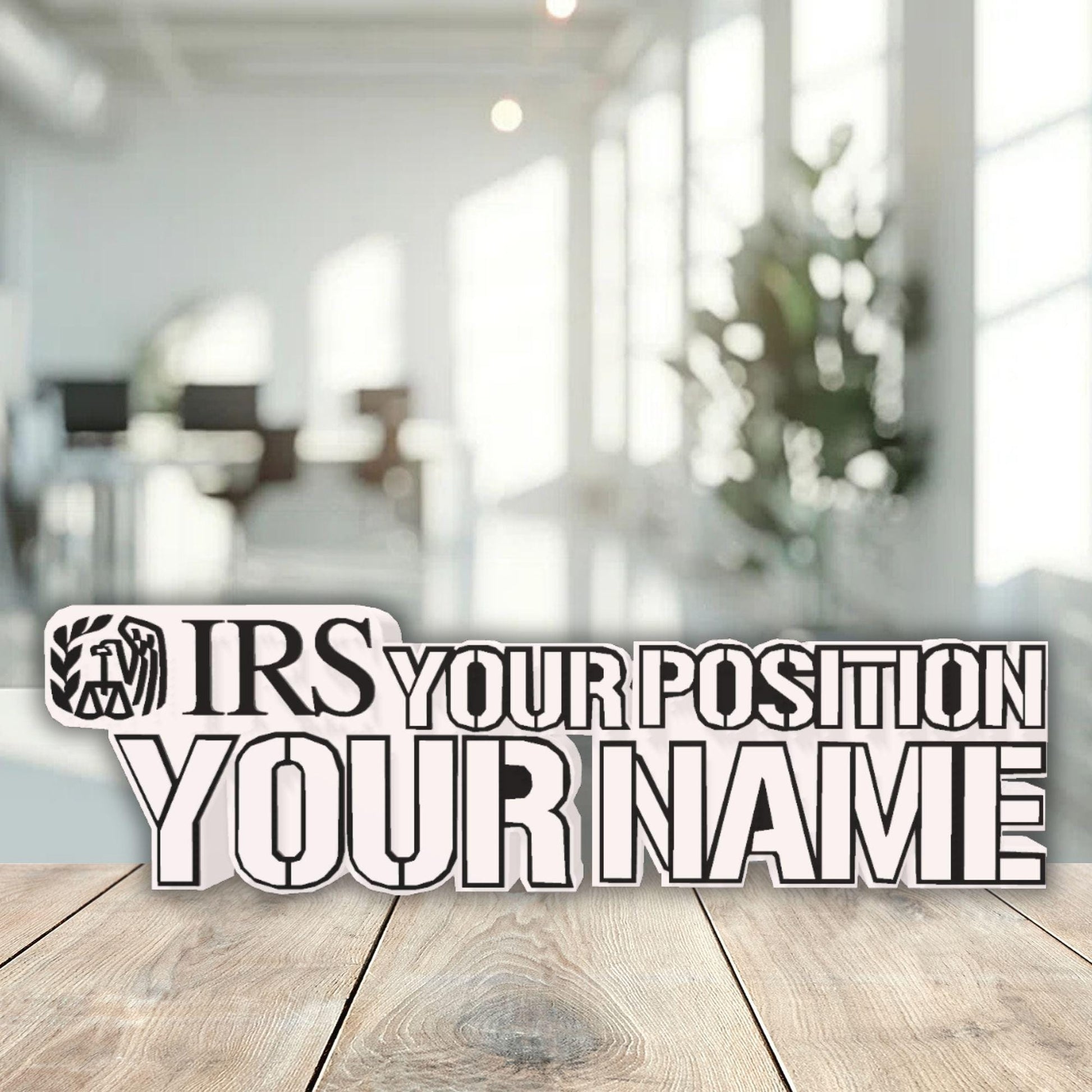 Personalized IRS Desk Name Plate, Internal Revenue Service Name Plaque, Office Gift for Boss