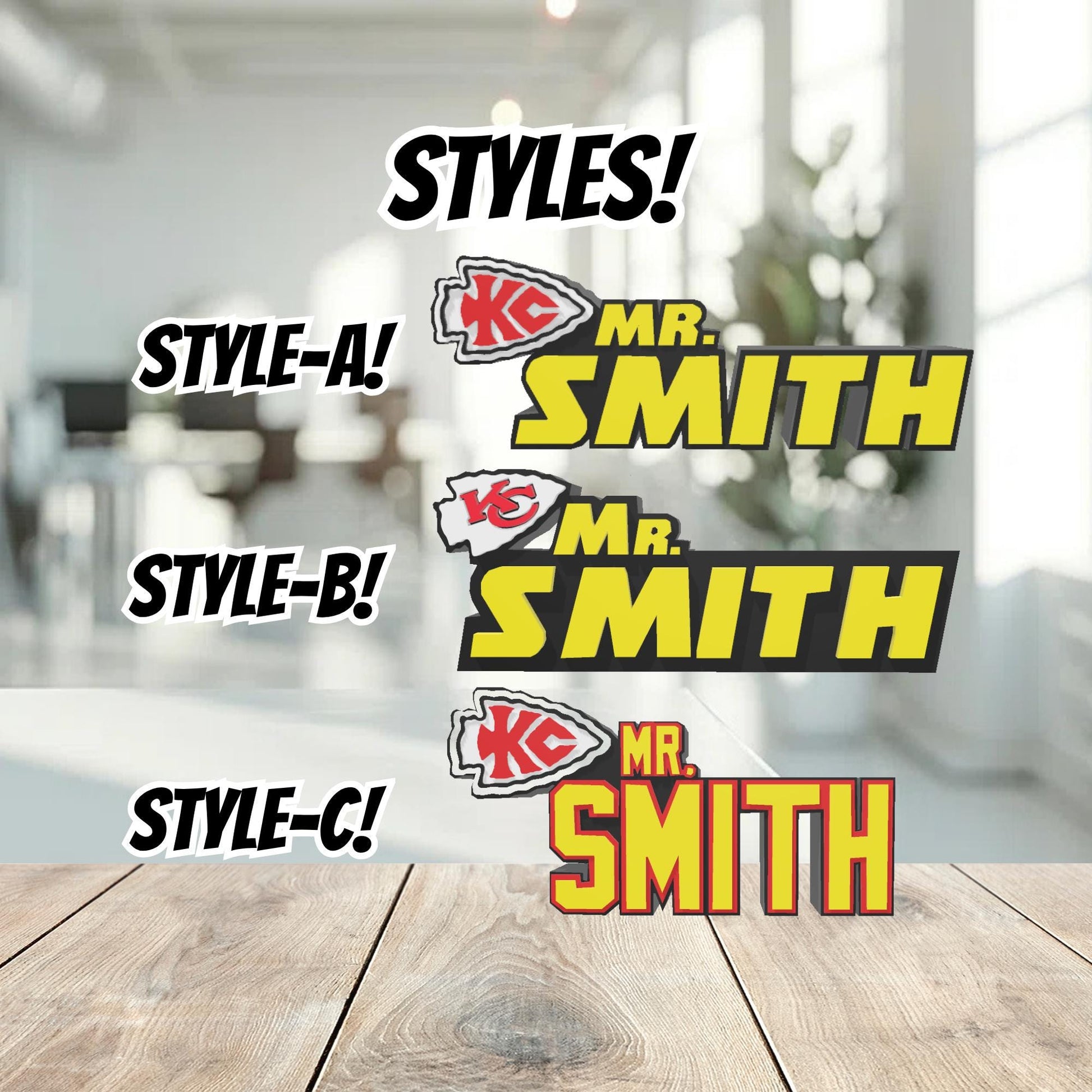 Personalized Kansas City Chiefs Desk Name Plate, Teacher Plaque, Coworker Gift, Teacher Classroom Decoration