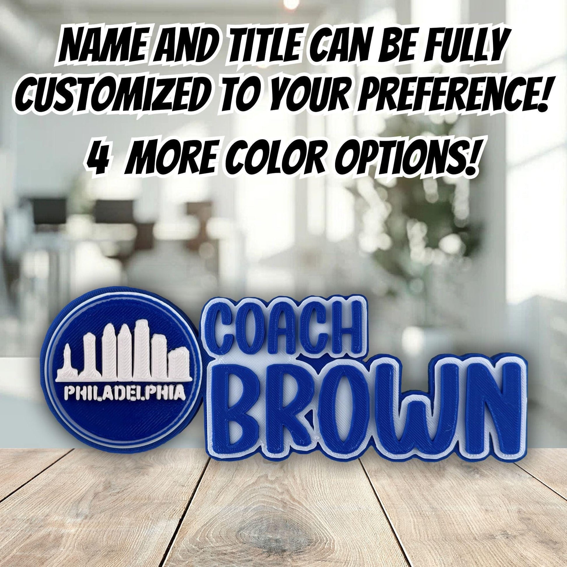 Personalized Philadelphia Skyline Desk Name Plate, Office Gift For Boss, Teacher Classroom