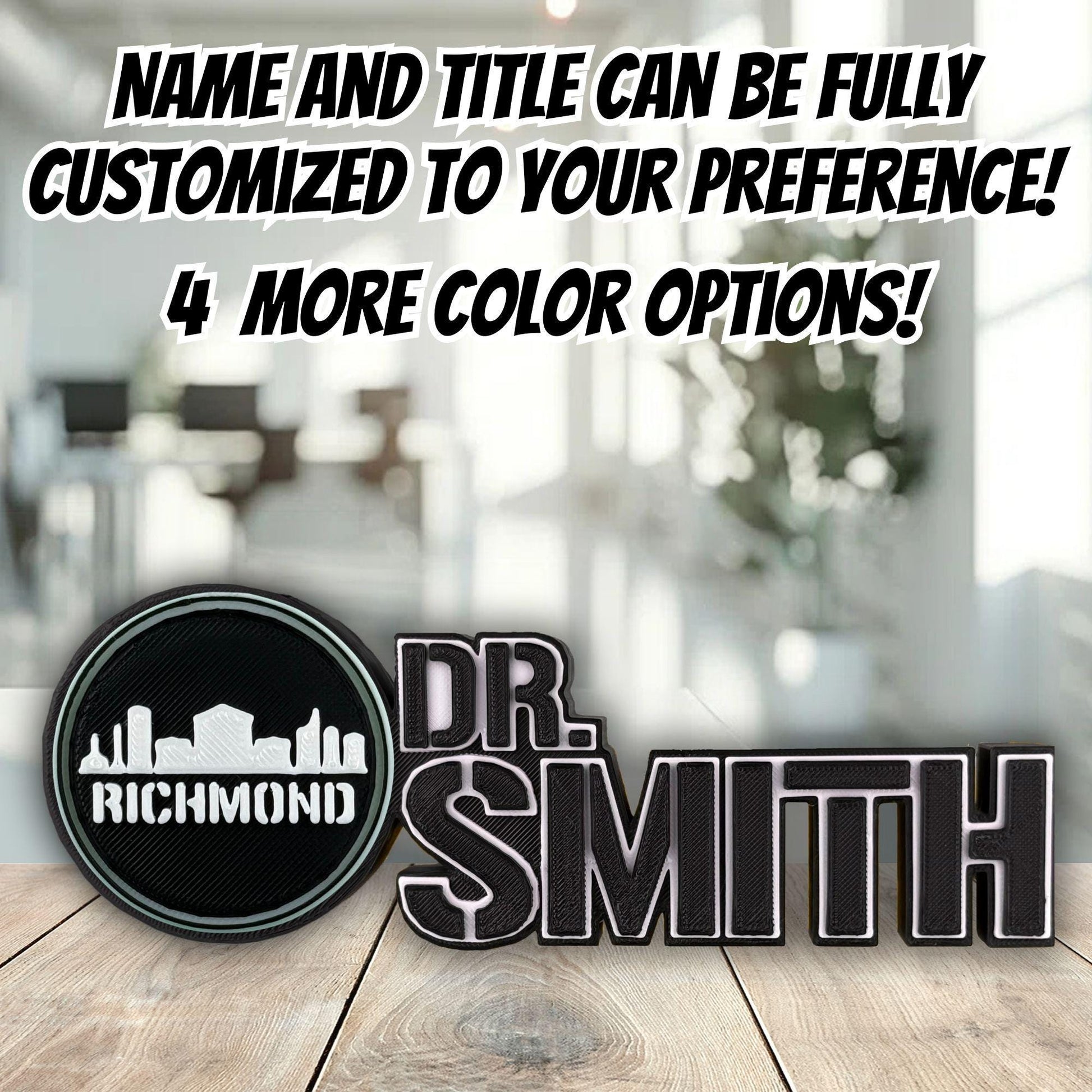 Additionally, if you’d like, I can replace the City Views logo on the left side of the Richmond desk name plate with any logo of your choice — perfect for a teacher desk sign, boss name plate, or anyone who loves Richmond office Décor.