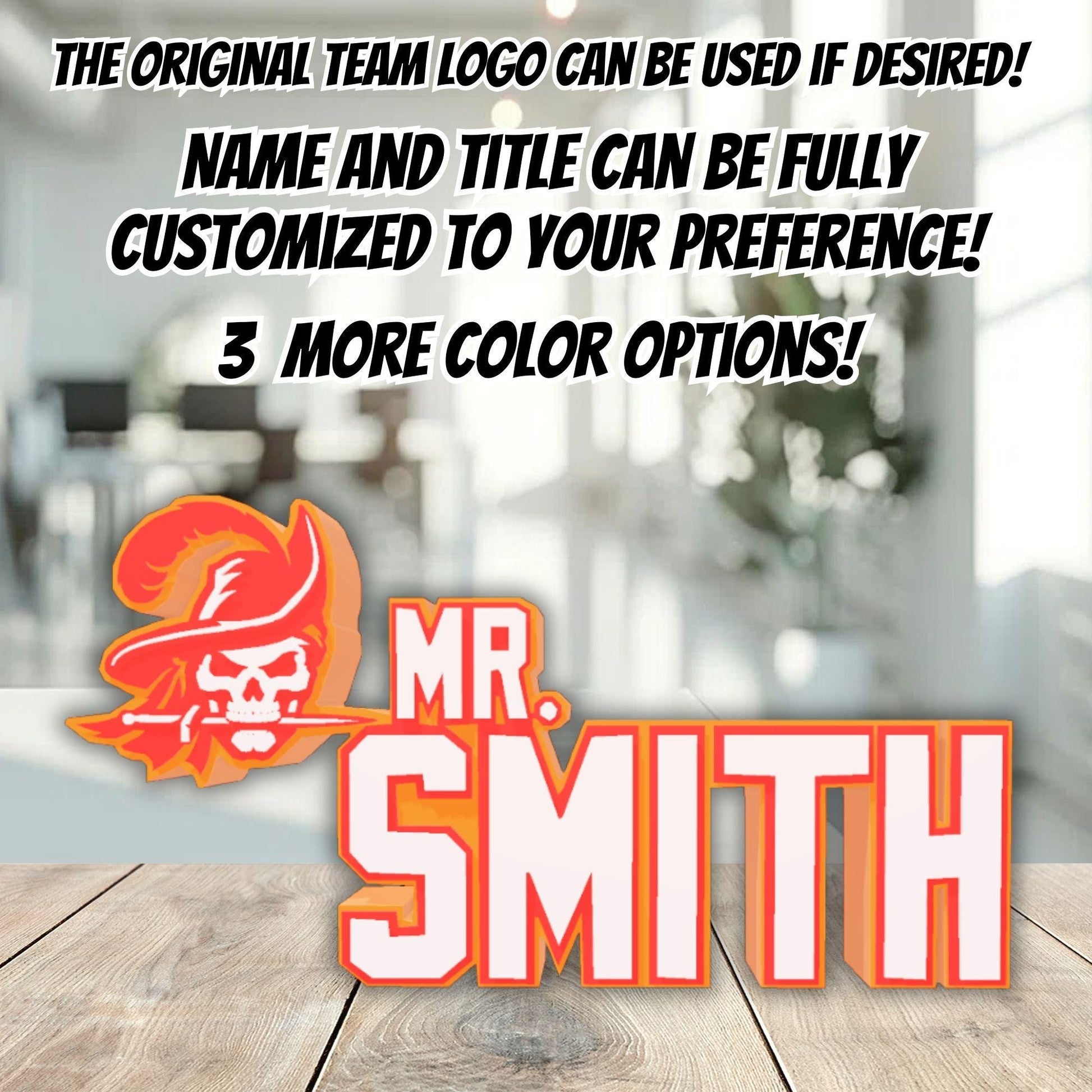 Personalized Tampa Bay Buccaneers Desk Name Plate, Teacher Desk Decoration, Gift for Coworker